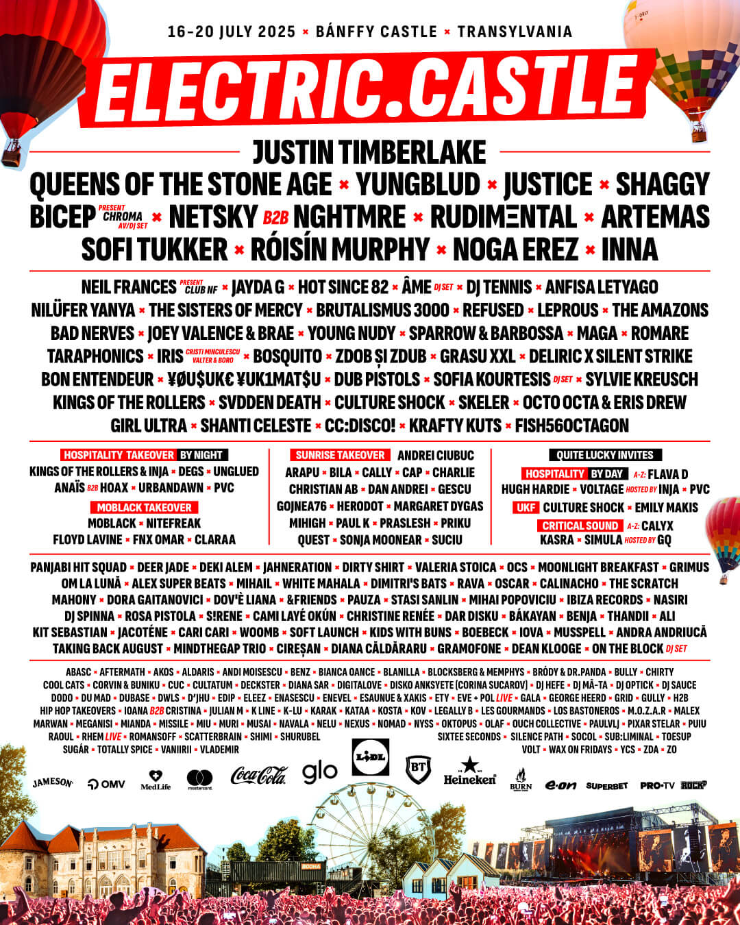Justin Timberlake, Queens of The Stone Age, Yungblud, Justice, Shaggy, Bicep, Netsky b2b NGHTMRE, Rudimental, Artemas, Sofi Tukker, Róisín Murphy, Noga Erez, Inna, and many more.
